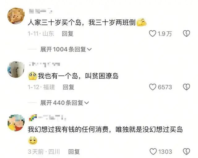 一网友在张书卿视频评论区中分享他了解到的小岛的信息:日本屋那霸岛的起拍价为60万美元(约406万人民币),实际成交价不低于6000万美元(约4亿元人民币)。该岛位于冲绳县,面积约70万平方米,拥有永久所有权。还有网友表示想上岛去玩。对此,张书卿解释,“小岛预告拍卖信息是公开的,很多网友可能能查到,但其实拍卖多次预告却因为种种原因取消了,并没有展开。至于网上传的有几千万的、几个亿的,大部分都是谣传。6000万美金这个数不是无缘无故出现,其实是因为当时有人出价想买,但是开发计划我们不是很满意,所以没卖。”